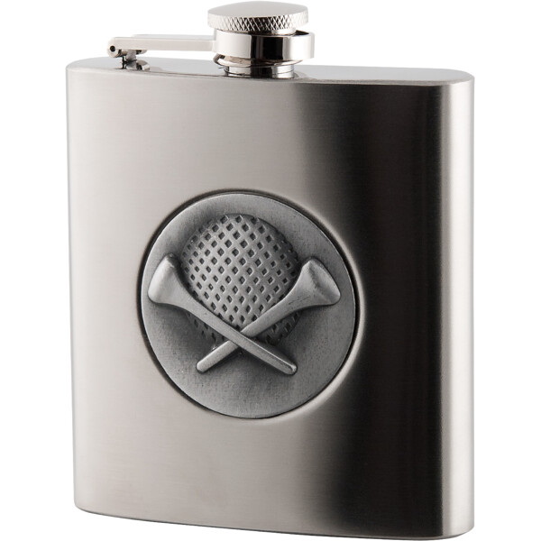Die Taschenflasche Andrew ist die ultimative Taschenflasche für alle Golfbegeisterten. Sie ist mit einem Golfornament verziert, das sie wirklich von gewöhnlichen Taschenflaschen abhebt.