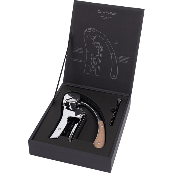 Oeno Motion Wood & Chrome ist ein wunderschöner Korkenzieher der exklusiven französischen Marke L’Atelier du Vin. Der Korkenzieher ist aus robustem massivem Walnussholz und verchromtem Metall gefertigt und beeindruckt mit einem patentierten Design. Der vertikale Hebel bietet Ihnen einen sicheren und bequemen Griff und passt zudem zu den meisten Weinflaschen. Mit seinem Folienschneider und dem Öl zum Schmieren der Schrauben bei Bedarf ist dies ein Zubehör, das Ihnen hilft, Ihre Lieblingsweine auf eine raffinierte Weise zu öffnen.