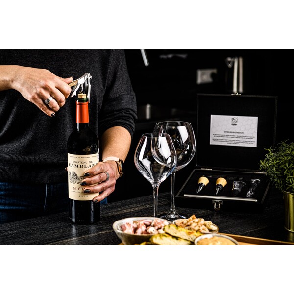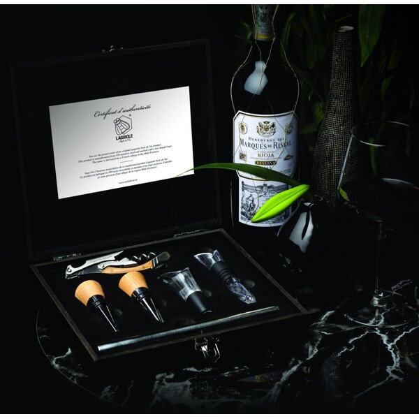 Das perfekte Set für alle Weinliebhaber! Dieses Korkenzieherset aus Eichenholz enthält folgende Zubehörteile: 2 Flaschenverschlüsse, einen Ausgießer, ein Ausgießrohr mit Kühlstab und einen schönen Korkenzieher aus Eiche.