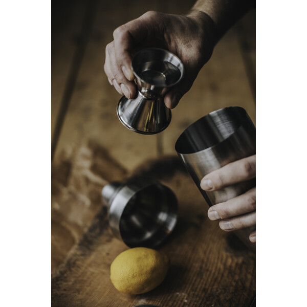 Suchen Sie das ultimative Werkzeug, um perfekte Cocktails zu Hause zu kreieren? Unser wendbares Messglas ist die geheime Zutat, die Ihre Bartending-Fähigkeiten auf ein neues Niveau hebt. Mit Messungen für sowohl 4 cl als auch 6 cl im selben Glas ist es ein unverzichtbares Werkzeug für jeden Cocktail-Enthusiasten. Die Maße befinden sich auf der Innenseite.