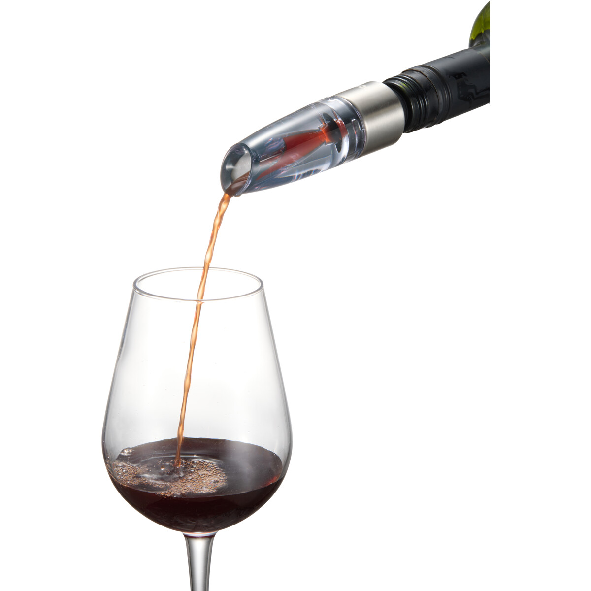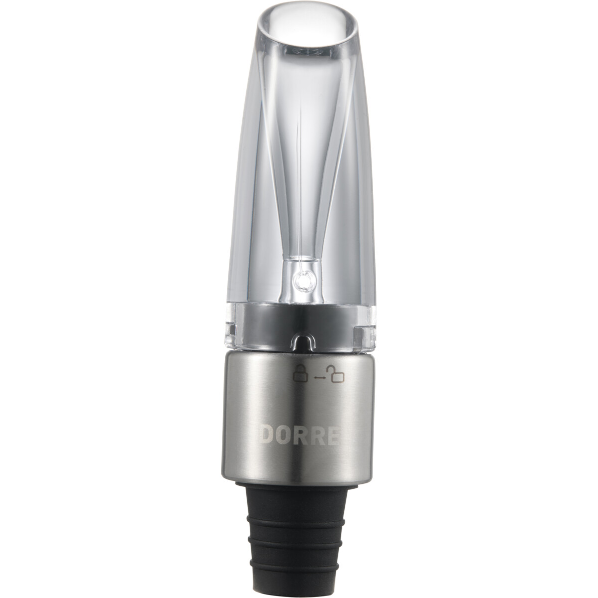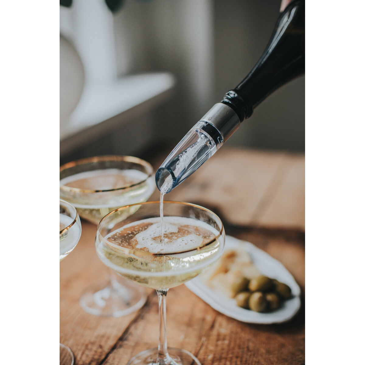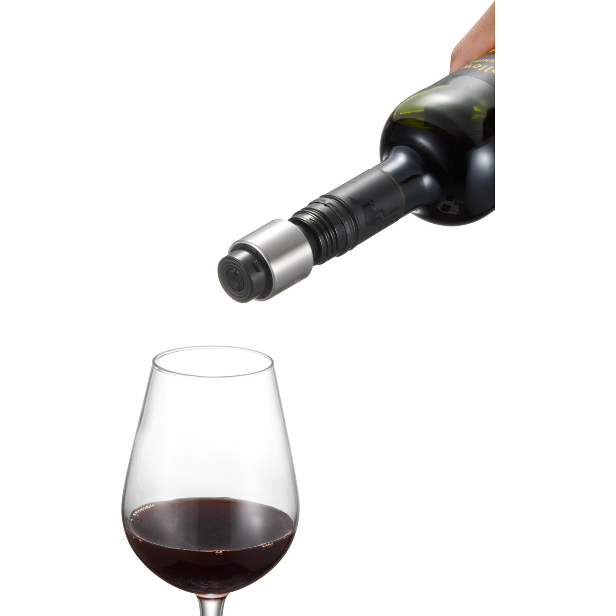 Verne Weindekanter und Weinverschluss in einem bieten auf einfache Weise sowohl ein besseres Aroma als auch eine längere Haltbarkeit. Das stilvolle schwarze Design passt zu allen Flaschen und macht das Servieren einfacher. Ein cleveres Werkzeug, das das Weinerlebnis sowohl bei Alltagsessen als auch bei festlicheren Anlässen verbessert.