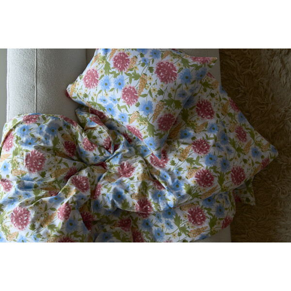 Bettwäsche-Set aus weicher, satinierter Baumwolle, das dem Bett ein glattes, kühles Gefühl verleiht. Mit seinem dezenten Glanz und seinem klassischen Ausdruck schafft Askum eine ruhige, entspannte Atmosphäre im gesamten Schlafzimmer.