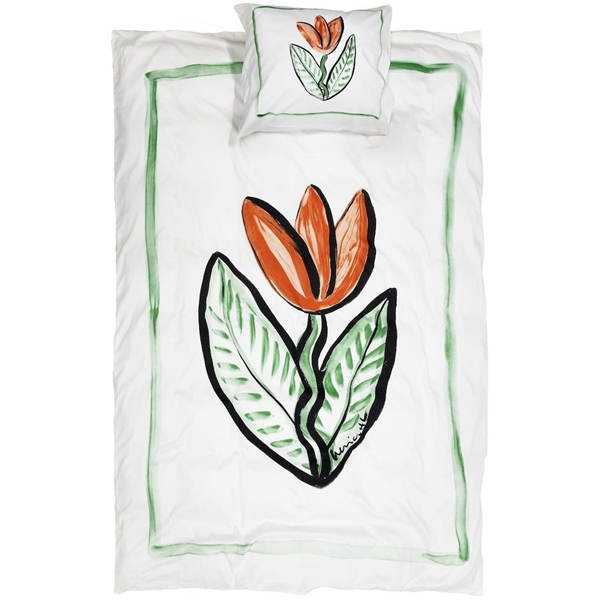 Bettwäsche-Set aus 100% Baumwollsatin von Kosta Linnewäfveri. Ein klassisches und schönes Muster einer Tulpe von Ulrica Hydman-Vallien, das in den meisten Haushalten beliebt ist.