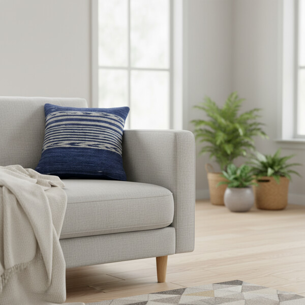Design: Markante Indigofarbe mit detaillierten geflochtenen Streifen für ein reichhaltiges, strukturiertes Aussehen. Handgefertigte Qualität: Jeder Bezug ist sorgfältig gefertigt und zeigt einzigartige Variationen und echte Handwerkskunst, was garantiert, dass Ihr Exemplar wirklich einzigartig ist. Vielseitige Dekoration: Perfekt für bohemische, küstennahe, rustikale oder moderne Innenräume und verbessert mühelos die Ästhetik Ihres Zuhauses.