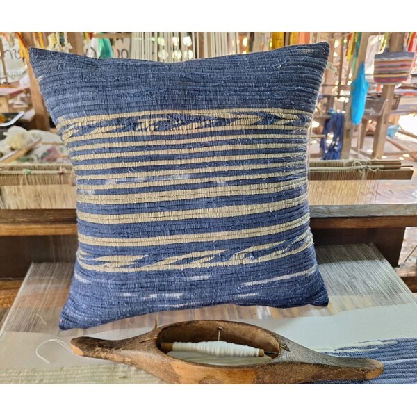 Fügen Sie Charme und einzigartige Textur in Ihr Wohnzimmer mit unserem exquisiten handgefertigten Kissenbezug aus Thailand hinzu. Mit wunderschönen Indigotönen und komplizierten geflochtenen Streifen verleiht dieser Kissenbezug jeder Couch, jedem Sessel oder Bett eine künstlerische Note und gemütliche Wärme. Erhältlich in 2 Größen.