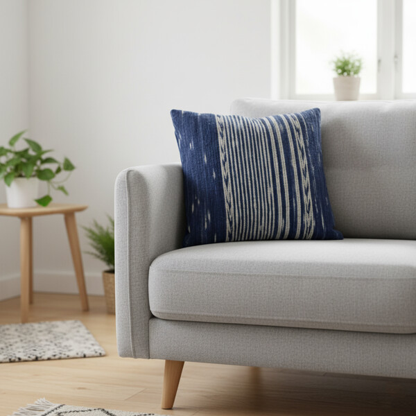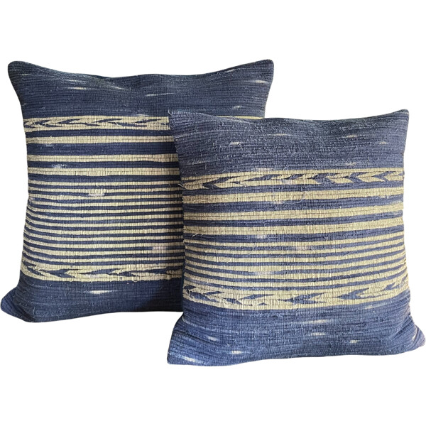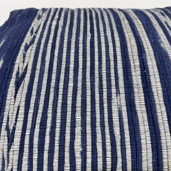 Design: Markante Indigofarbe mit detaillierten geflochtenen Streifen für ein reichhaltiges, texturiertes Aussehen. Handgefertigte Qualität: Jeder Bezug ist sorgfältig gefertigt und zeigt einzigartige Variationen und echte Handwerkskunst, was garantiert, dass Ihr Exemplar wirklich einzigartig ist. Vielseitige Dekoration: Perfekt für bohemische, küstennahe, rustikale oder moderne Innenräume und verbessert mühelos die Ästhetik Ihres Zuhauses.