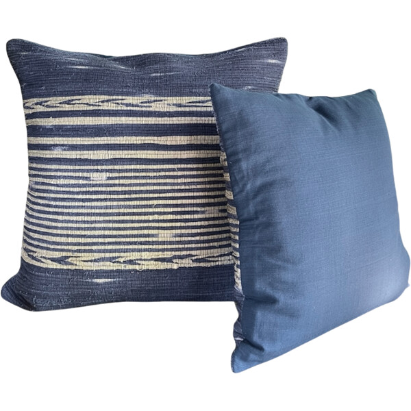 Fügen Sie Charme und einzigartige Textur in Ihr Wohnzimmer mit unserem exquisiten handgefertigten Kissenbezug aus Thailand hinzu. Mit wunderschönen Indigotönen und komplizierten geflochtenen Streifen verleiht dieser Kissenbezug jeder Couch, jedem Sessel oder Bett eine künstlerische Note und gemütliche Wärme. Erhältlich in 2 Größen.