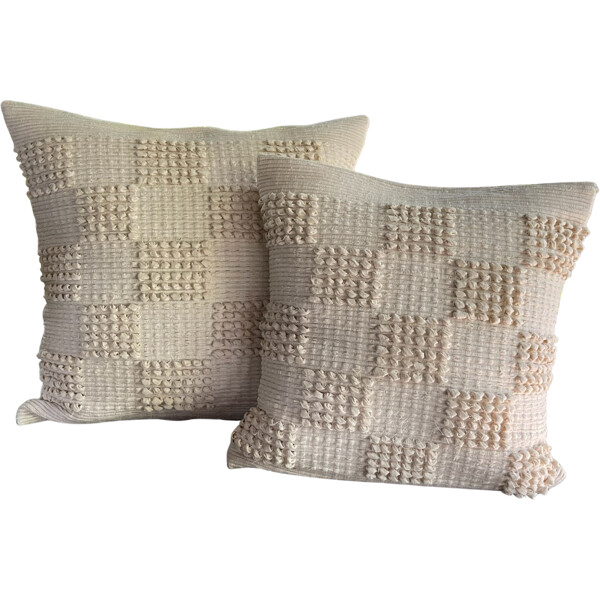 Fügen Sie reiche Textur zu Ihrem Zuhause mit unserem wunderschönen handgefertigten Kissenbezug aus Thailand hinzu. Mit einem eleganten elfenbeinfarbenen Karomuster verleiht dieser Bezug jedem Sofa, Sessel oder Bett ein verfeinertes, gemütliches und einladendes Gefühl. Erhältlich in 2 Größen. Größe: 40 x 40 cm Material: 100% handgewebte Baumwolle. Design: Klassisches elfenbeinfarbenes Karomuster mit einer markanten strukturierten Webart, die eine zeitlose und vielseitige Ästhetik bietet. Handgefertigte Qualität: Jeder Bezug ist sorgfältig gefertigt und zeigt echte Handwerkskunst und subtile Variationen, die jedes Stück einzigartig machen. Vielseitige Dekoration: Ideal für minimalistische, skandinavische, moderne oder traditionelle Innenräume und verbessert Ihren Heim mit dezenter Eleganz.