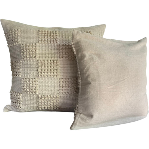 Fügen Sie reiche Textur mit unserem wunderschönen handgefertigten Kissenbezug aus Thailand hinzu. Mit einem eleganten elfenbeinfarbenen Karomuster verleiht dieser Bezug jedem Sofa, Sessel oder Bett ein verfeinertes, gemütliches und einladendes Gefühl. Erhältlich in 2 Größen. Größe: 50 x 50 cm Material: 100% handgewebte Baumwolle. Design: Klassisches elfenbeinfarbenes Karomuster mit einer markanten strukturierten Webart, die eine zeitlose und vielseitige Ästhetik bietet. Handgefertigte Qualität: Jeder Bezug ist sorgfältig gefertigt und zeigt echte Handwerkskunst und subtile Variationen, die jedes Stück einzigartig machen. Vielseitige Dekoration: Ideal für minimalistische, skandinavische, moderne oder traditionelle Innenräume und verbessert Ihren Heim mit dezenter Eleganz.