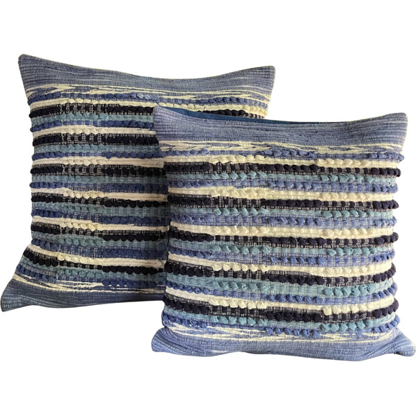 Bringen Sie die beruhigende Essenz des Meeres in Ihr Zuhause mit unserem wunderschönen handgefertigten Kissenbezug aus Thailand. Mit sanften Blau- und Weißtönen sowie einem reichhaltigen, texturierten Ozeanwebmuster verleiht dieser Bezug jedem Wohnzimmer Küstencharme und gemütlichen Komfort. Erhältlich in 2 Größen. Größe: 40 x 40 cm Material: 100% handgewebte Baumwolle. Design: Beruhigende Blau- und Weißpalette mit einem komplizierten, texturierten Ozeanwebmuster, das ein friedliches Küstengefühl hervorruft. Handgefertigte Qualität: Jeder Bezug ist sorgfältig gefertigt und zeigt echte Handwerkskunst und subtile Variationen, die Ihr Stück wirklich einzigartig machen. Vielseitige Dekoration: Perfekt für Küsten-, Boho-, moderne oder sogar minimalistische Innenräume und wertet Ihre Einrichtung mühelos auf.