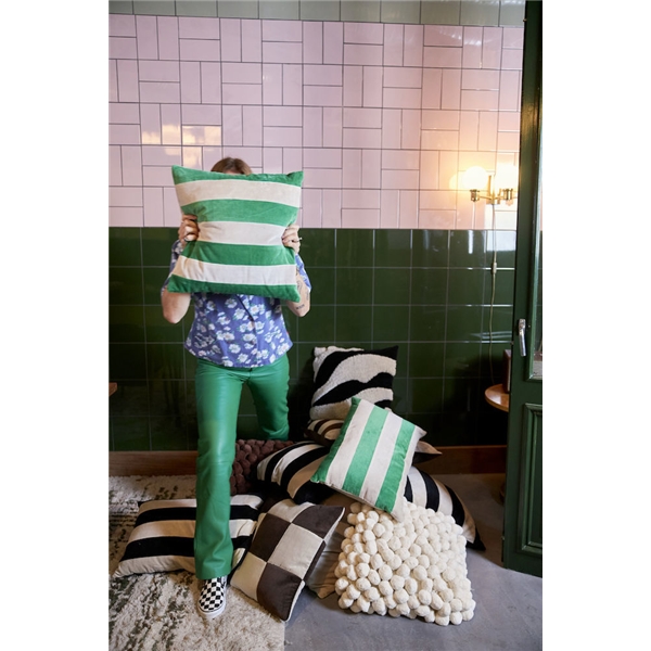 Das weichste aller Kissen, gemischt mit den coolsten Streifen in schwarzem und beigem Baumwollsamt. Mit diesem Kissen auf dem Sofa erhältst du sofort eine Kombination aus Attitüde und Luxus. Die großzügige Größe passt perfekt auf das Sofa oder den Sessel.