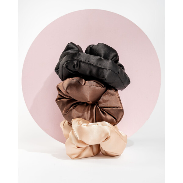 Geben Sie Ihrer Haarpflegeroutine ein Upgrade mit den Brushworks Large Classic Cloud Scrunchies. Mit einer weich gepolsterten Füllung, die mit luxuriösem Satin überzogen ist, sind sie so weich wie eine Wolke und halten das Haar an Ort und Stelle, ohne zu reißen oder zu ziehen.Dieses 3er-Pack in neutralen Farben kombiniert Stil und Funktion – perfekt für alle Gelegenheiten. Egal, ob Sie sich zu Hause entspannen, tagsüber unterwegs sind oder sich für den Abend fertig machen, diese vielseitigen Scrunchies begleiten Sie problemlos. Das gepolsterte Design bietet zudem zusätzlichen Komfort, auch während der Nacht, und hilft, Knicke und Biegungen im Haar zu vermeiden.