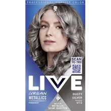 Live Intense Color Urban Metallics verleiht Ihnen maximale Farbtiefe und kühle, schimmernde Nuancen mit metallischem Glanzeffekt. Der Glanzverstärker "Metallic Shine" mit Kokosnussöl verleiht Ihrem Haar einen metallischen Farbton und macht es frisch und weich.