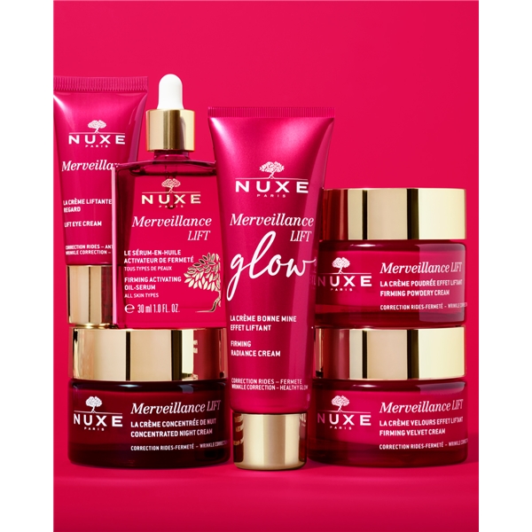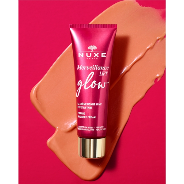 Merveillance LIFT Glow Firming Radiance Cream von NUXE ist angereichert mit einem ultrakorrigierenden und Anti-Aging-Mikroalgenöl sowie botanischem Tomatenextrakt, das eine subtile Farbe hat, die den Hautton ausgleicht. Direkt nach der Anwendung wird die Haut glatter, strahlender und frischer. Mit der Zeit wird die Haut glatter und fester mit einem jugendlicheren und schöneren Aussehen – auch ohne Make-up.