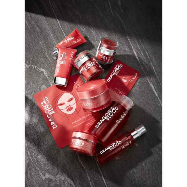 Aqua/Water/Eau, Glycerin, Methylpropanediol, Chondrus Crispus Extract, Potassium Chloride, Ceratonia Siliqua (Carob) Gum, Sucrose, Croton Lechleri Resin Extract, Punica Granatum Fruit Extract, Ficus Carica (Fig) Fruit Extract, Morus Alba Fruit Extract, Ginkgo Biloba Nut Extract, Sodium Hyaluronate Crosspolymer, Hydrolyzed Glycosaminoglycans, Sodium Hyaluronate, Hydrolyzed Hyaluronic Acid, Hyaluronic Acid, Xanthan Gum, Cellulose Gum, Allantoin, PEG-60 Hydrogenated Castor Oil, Disodium EDTA, 1,2-Hexanediol, Hydroxyacetophenone, Glyceryl Caprylate, Iron Oxide (CI 77491), Synthetic Fluorphlogopite, Titanium Dioxide (CI 77891), Red 40 (CI 16035).