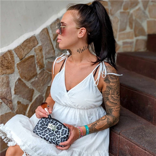 Hergestellt aus strapazierfähigem veganem Leder in schwarz oder grauem Leopardenmuster.