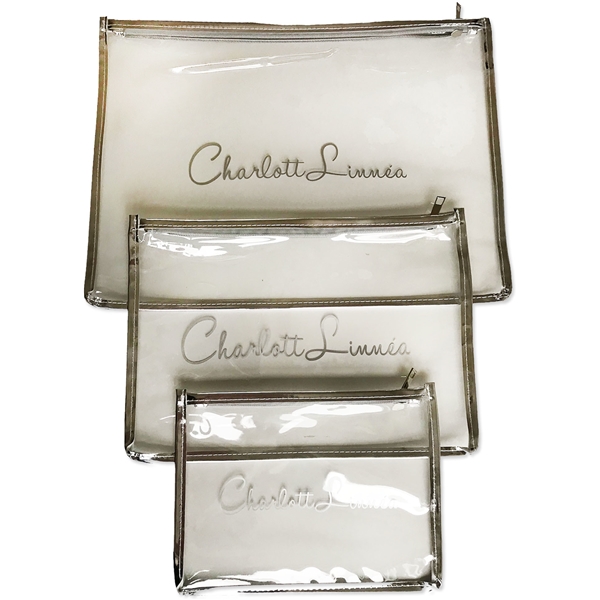 Ein Set mit 3 dieser perfekten Organizer aus transparentem Material, in denen du all deine "herumliegenden" persönlichen Gegenstände in deiner Tasche sammeln kannst, um Ordnung und Übersicht zu haben.