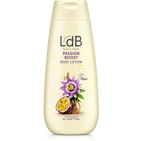 LdB Lotion Passion Boost ist eine feuchtigkeitsspendende Lotion, die Ihre Haut weich macht und einen frischen und fruchtigen Duft nach Passionsfrucht hat. Enthält pflegendes Quinoaprotein und zieht leicht in die Haut ein.