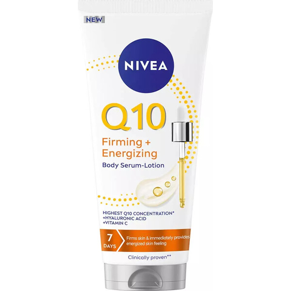 NIVEA Q10 Firming & Energizing Body Serum-Lotion ist ein innovatives Produkt mit unserer höchsten Konzentration an reinem Q10*, Vitamin C und Hyaluronsäure.