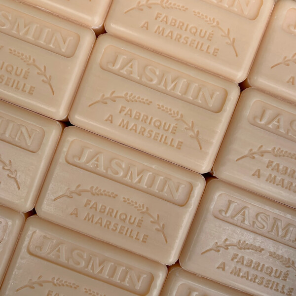 Handgemachte französische Naturseife aus Marseille mit einem klassischen, blumigen Duft von Jasmin.