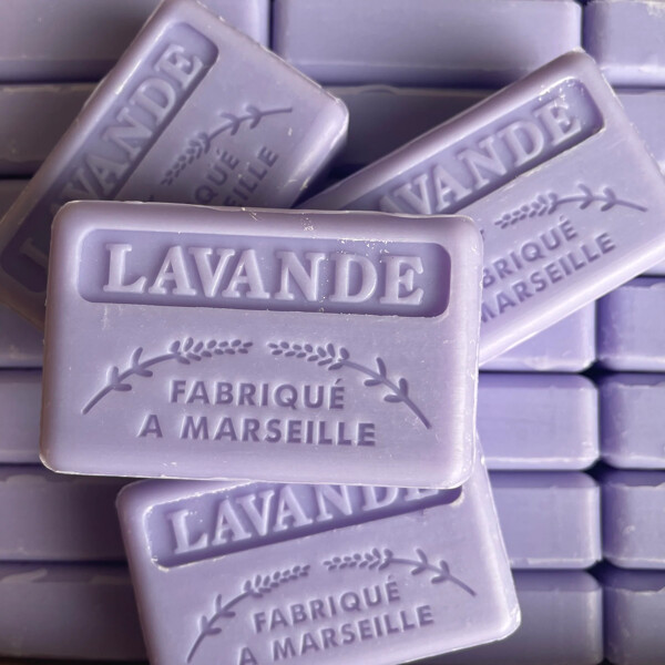Handgemachte französische Naturseife aus Marseille mit einem klassischen und beruhigenden Lavendelduft.