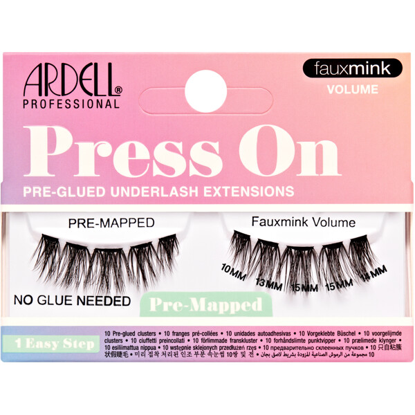 Erzielen Sie perfekte Wimpern in weniger als einer Minute mit Ardells Pre-Mapped Press-On Extensions. Das vorgeklebte Wimpernband bietet den ganzen Tag sicheren Halt, ohne Kleber, Schmutz oder Aufwand.