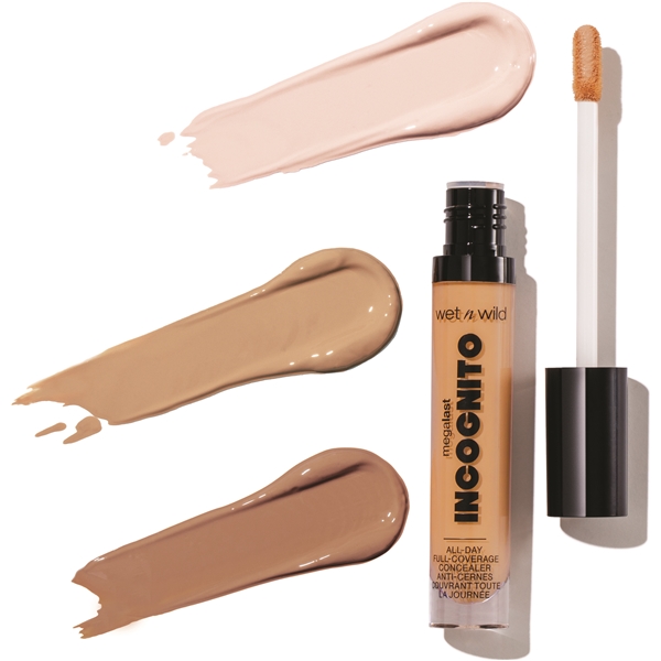 MegaLast Incognito Full Coverage Concealer von wet n wild ist angereichert mit pflegenden und feuchtigkeitsspendenden Inhaltsstoffen wie Sheabutter, Süßholzwurzelextrakt und Mangokernbutter. Er ist langanhaltend und lässt sich von mittlerer bis voller Deckkraft aufbauen und verleiht ein mattes Finish.