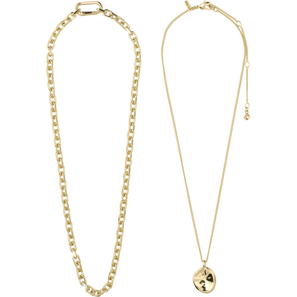 Mit den vergoldeten SPARKLE-Halsketten von Pilgrim erhältst du deine neuen Lieblingsaccessoires. Eine glänzende Ankerkette mit einem dekorativen Karabinerverschluss und eine schlanke Münzkette mit einem reflektierenden Anhänger, der einem kleinen Fingerabdruck ähnelt, verleihen deinem Look eine persönliche Note und schaffen die perfekte Kombination aus street-ready Vibes und verträumter Eleganz.