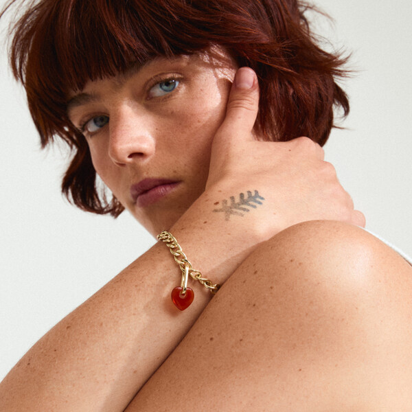 Setzen Sie ein persönliches Statement mit den schicken Charms von Pilgrim. Mit einem Herzanhänger aus dem Halbedelstein roter Achat können Sie Ihrem Stil einen einzigartigen und persönlichen Look verleihen. Roter Achat soll vor negativen Energien schützen und gilt als förderlich für Mut, Selbstvertrauen und Willenskraft. Nutzen Sie die vielen positiven Eigenschaften des Steins und kombinieren Sie das Achat-Herz mit Anhängern mit anderen Symbolen und Buchstaben für ein persönliches Styling, das genau zu Ihnen passt.