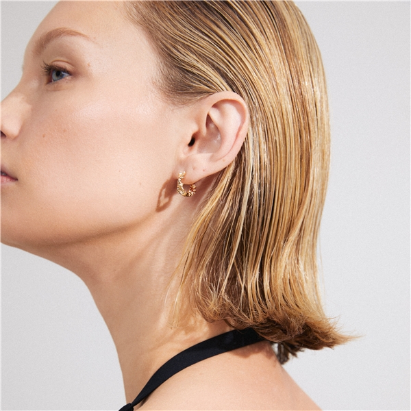 Vertraue deinem Weg und bringe deinen Look mit den TRUST-Ohrringen von Pilgrim auf das nächste Level. Die rustikal vergoldeten Huggie Hoops haben einen organischen Charme und ein handgefertigtes Gefühl, das perfekt ist, um all deine Outfits aufzupeppen. Ein einfach zu handhabender Klickverschluss macht sie leicht zu stylen, während der rustikale Look die Strickwaren und weichen Stoffe der Saison ergänzt. Die Ohrringe sind bewusst aus 99% recyceltem Material hergestellt – das ist Mode mit Bedacht.
