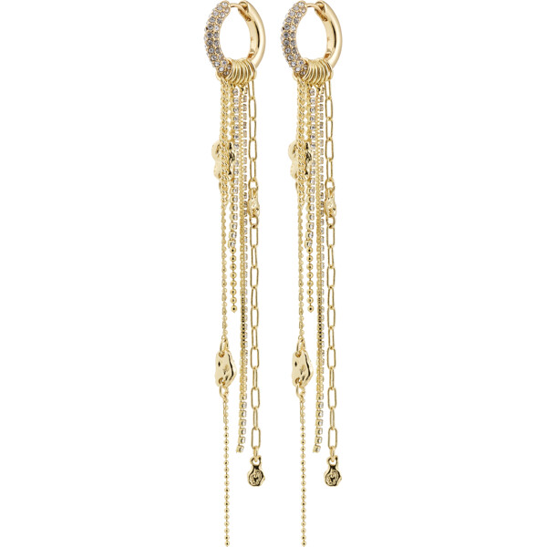 Die vergoldeten DRUE-Ohrringe von Pilgrim sind die ultimative Wahl, wenn du deinem Look einen Hauch von einfacher Eleganz verleihen möchtest. Die kleinen Creolen mit Preciosa-Kristallen verschmelzen mit einem Wasserfall aus Ketten und feinen Anhängern, die einen verspielten, unbeschwerten Ausdruck mit einem luftigen Gefühl schaffen.