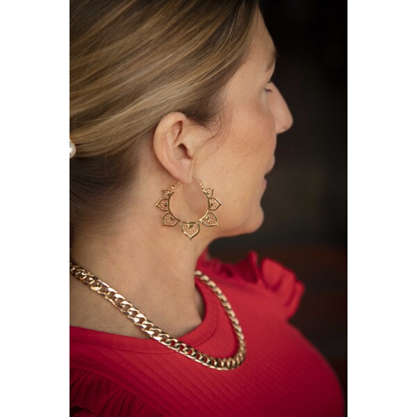 Die Ohrringe sind vergoldet und haben einen Durchmesser von 4,8 cm.