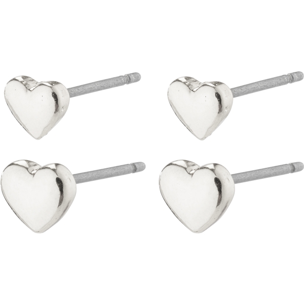 Einfache, versilberte Ohrringe im Set zu zwei Stück. Behalte beide Paare für dich selbst oder teile sie mit jemandem, den du magst. Die Ohrringe sind herzförmig und kommen in 2 verschiedenen Größen, die du gleichzeitig für einen niedlichen Ohrschmuck-Look stylen oder einzeln tragen kannst, um viele minimalistische Details in deinem Ausdruck zu haben. Perfekt für einen lässigen Look oder wenn du etwas Einfaches in Kombination mit einem farbenfrohen Outfit möchtest.