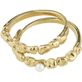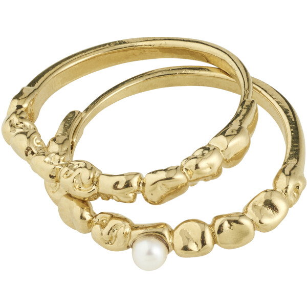 Das vergoldete SHIFT-Ringset von Pilgrim wurde für dich kreiert, wenn du einen gestapelten Look mit einem Hauch von romantischer Eleganz liebst. Die beiden Ringe haben eine organische Form mit glänzendem Finish, wobei einer eine kleine perlmuttfarbene Glasperle hat, die einen traumhaften Touch verleiht.