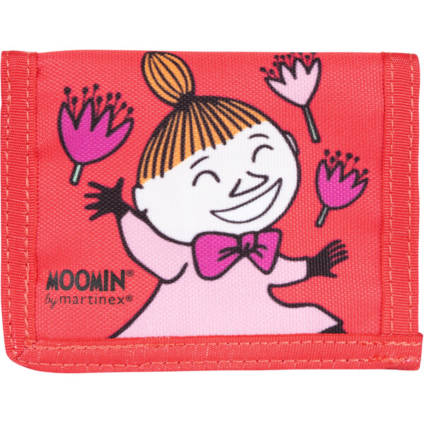 Ein farbenfrohes Mumin-Portemonnaie aus robustem Polyester-Canvas, mit fröhlicher Kleiner My und Blumen. Innentasche mit Reißverschluss für Münzen und Fächer für Ausweise und Geldscheine. Verschließt mit Klettverschluss.