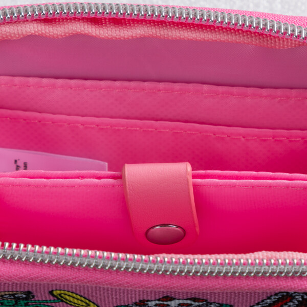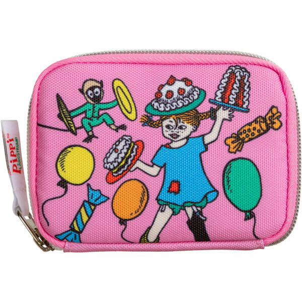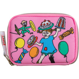Ein schönes kleines Portemonnaie in der Größe 13 x 10 cm. Das Portemonnaie ist fröhlich mit Pippi-Muster gestaltet und aus robustem Polyester mit Reißverschluss gefertigt.