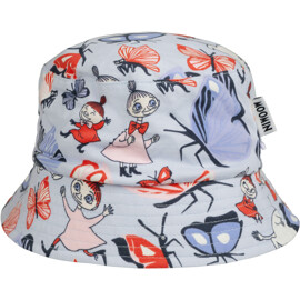 Ein weicher und bequemer Mumin Sonnenhut für Kinder. Der Sonnenhut ist gefüttert und sein Rand schützt die Augen vor der Sonne. Das Produkt enthält zertifizierte Bio-Baumwolle.