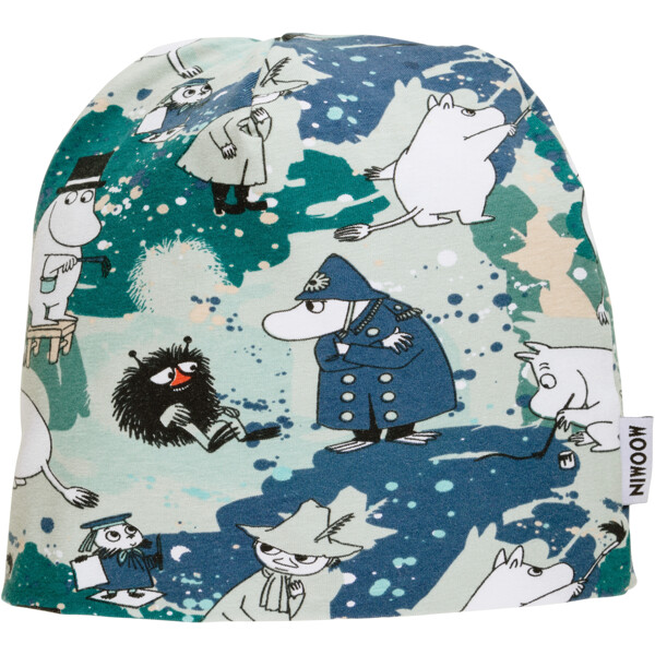 Eine weiche und gemütliche Mumin-Mütze für Kinder. Die Mütze ist aus doppellagigem Jersey gefertigt. Das Produkt enthält zertifizierte Bio-Baumwolle.