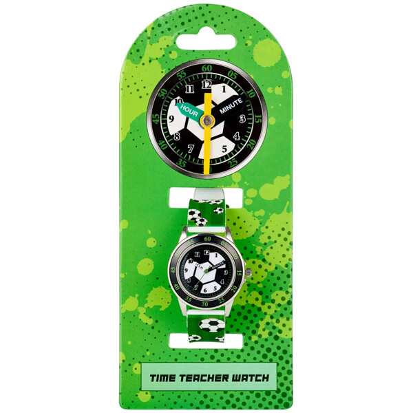 Accutime Time Teacher Watch Soccer ist eine analoge Uhr mit leicht verständlichen Zeigern.