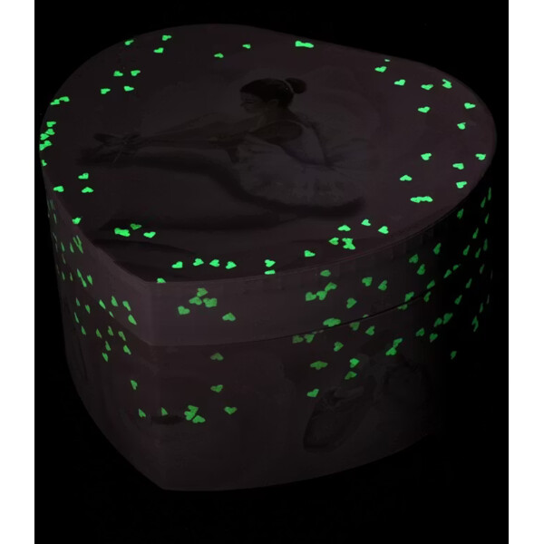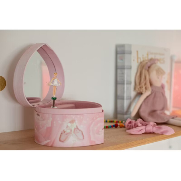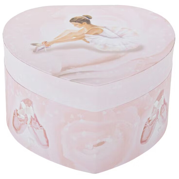 Diese Spieluhr in Herzform bietet dem Kind die Möglichkeit, seine Juwelen und Geheimnisse aufzubewahren. Drehen Sie die Kurbel, und die Ballerina-Figur erwacht wie durch Magie zum Klang der Musik zum Leben!