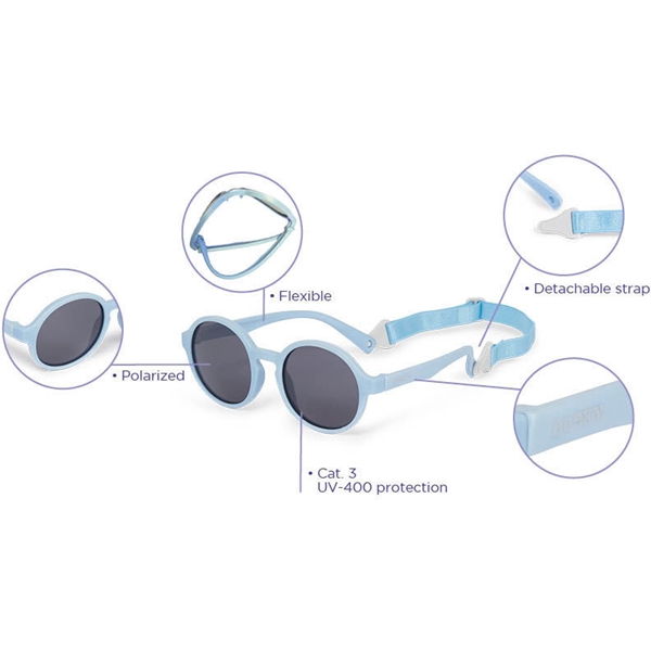 Dooky Sonnenbrille Fiji sind stylische Sonnenbrillen für Kinder im Alter von 6 bis 36 Monaten. Diese polarisierten Sonnenbrillen bieten den Kleinsten einen guten Schutz mit UV400. Mit dem abnehmbaren, elastischen Band können Sie die Brille einfach anpassen, um einen bequemen Sitz zu gewährleisten.