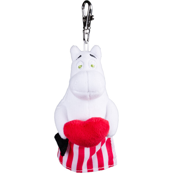 Ein Taschenanhänger oder Schlüsselanhänger von Mumin. Die weiche und kuschelige Muminmama hält ein kleines Herzkissen in den Armen. Der Schlüsselanhänger ist etwa 10 cm hoch und aus Polyester gefertigt, mit einem praktischen Clip-Verschluss aus Metall. Leicht an der Tasche, dem Schlüsselbund oder überall sonst zu befestigen. Perfekt, um den Alltag aufzuhellen oder als Geschenk für jemanden, den man mag!