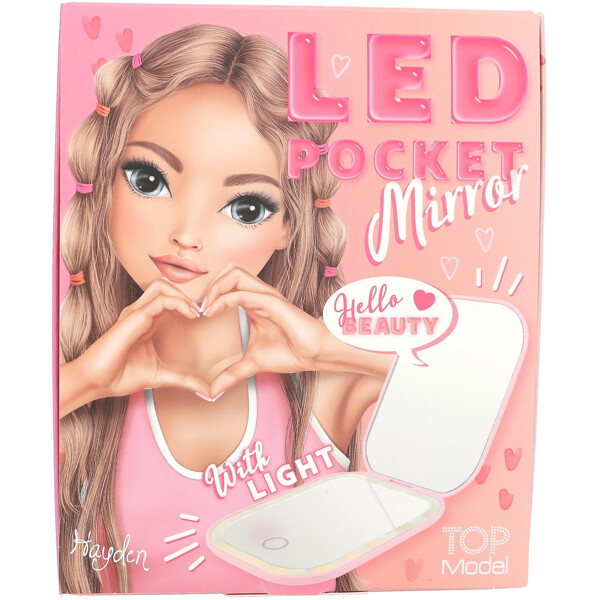 Der ultimative Schminkspiegel für unterwegs: Praktischer rosa Taschenspiegel von TOPModel mit einem normalen Spiegel sowie einem Vergrößerungsspiegel auf der Innenseite. Die integrierte LED-Beleuchtung im unteren Spiegelelement wird einfach über einen Touchsensor gesteuert (ein/aus sowie 3 Lichtstufen).