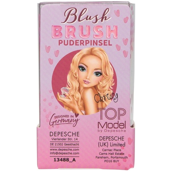 Dieser ultraweiche Puderpinsel von TOPModel hat einen quadratischen Griff in Kristalloptik mit einem roségoldenen Rand und Logodruck. Die Borsten selbst bilden dank ihrer unterschiedlichen Längen und Farben eine schöne Rose.