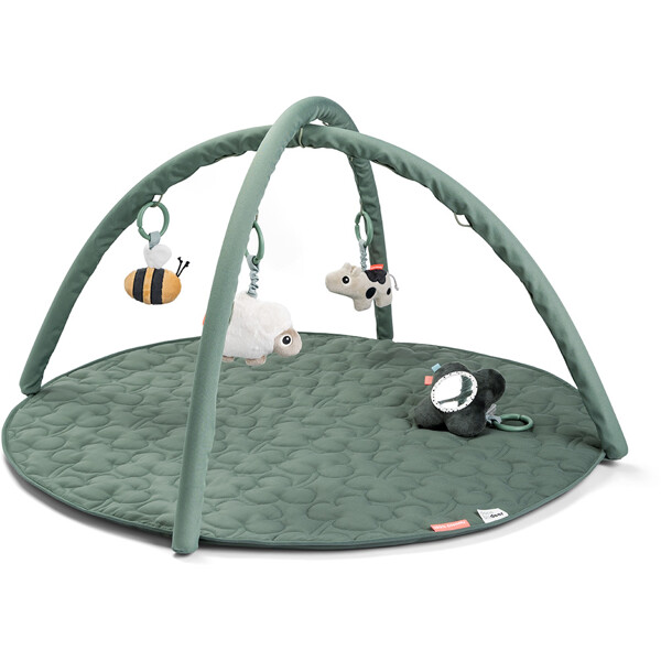 Done by Deer Activity Play Mat Tiny Farm ist eine Spielmatte mit einem Bogen mit Spielzeugen.