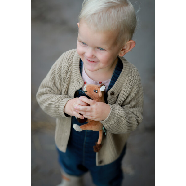 Weiche Mamma Mu, die schnell zum Favoriten der Kleinen wird. Der eingebaute Ring aus Naturkautschuk macht es einfach, sie mit kleinen Händen zu halten - und perfekt zum Kauen, wenn die Zähne kommen.