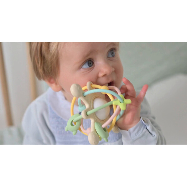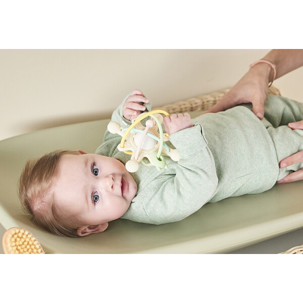 Das Beißspielzeug Galaxy bietet Ihrem Baby viel Spielspaß und lindert auch Beschwerden beim Zahnen. Das süße Design mit Sternen und Planeten ermutigt Ihr Baby, die vielen Details und Strukturen zu erkunden, darauf zu beißen und zu saugen. In der Mitte befindet sich eine Sonne mit Rassel. Die durchdachte Form ist perfekt für kleine Hände geeignet und fördert die Entwicklung des Greifreflexes und der Feinmotorik Ihres Babys.Beißfreundliches weiches Spielzeug mit RasselFördert die FeinmotorikFür kleine Hände entworfenBPA-freies SilikonMit Seife und Wasser reinigenGröße: 12 x 12 x 9 cm