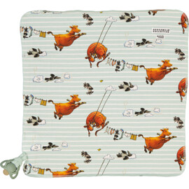 Eine herrlich weiche Schmusetuch, das leicht zum besten Freund des Kindes wird. Motiv mit der klugen Kuh Mama Muh. Das Schmusetuch ist aus weichem und angenehmem Bio-Baumwolljersey hergestellt.