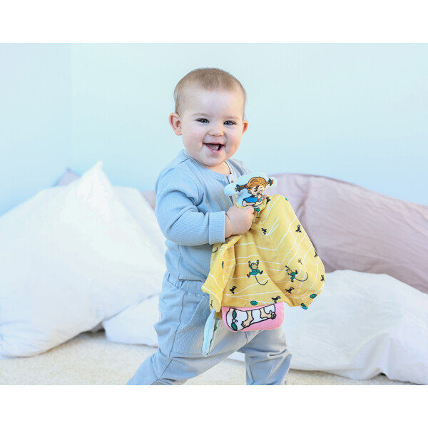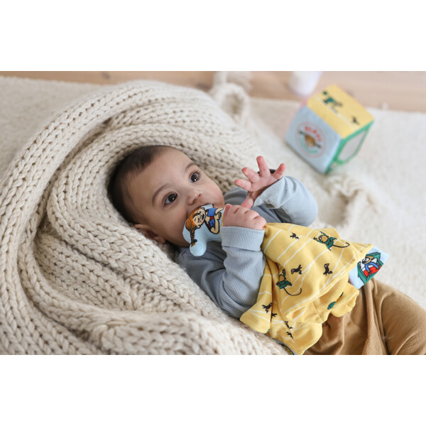 Eine superweiche Schmusedecke, die schnell zum Favoriten der Kleinsten wird. Mit einer farbenfrohen Illustration und kleinen lustigen Bändern zum Fühlen wird die Decke zu einem Muss für das jüngste Familienmitglied. Die Decke ist 45x45 cm groß und passt perfekt in den Kinderwagen, das Bett oder auf den Schoß und ist leicht überallhin mitzunehmen. Ein kuscheliges Babyspielzeug zum Festhalten, Ausruhen und Spielen jeden Tag.