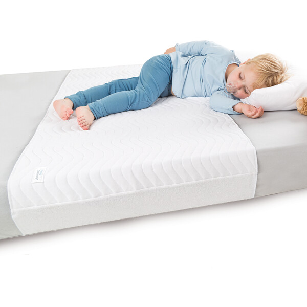 Doomoo Basics Matratzenschoner ist einer der fortschrittlichsten Matratzenschoner auf dem Markt, der sowohl für Babys, Kinder als auch Erwachsene geeignet ist.Der Matratzenschoner hat eine Absorptionsfähigkeit von 2 Litern/m² mit seinen fünf verschiedenen Schichten. Die einzigartige Zusammensetzung ermöglicht es dem Matratzenschoner, große Mengen Flüssigkeit im Kern zu absorbieren, während die äußerste Schicht trocken bleibt. Der Matratzenschoner ist vollständig wasserdicht, gepolstert und das Material ist zudem atmungsaktiv.Der Matratzenschoner wächst mit dem Kind und ist leicht zu beziehen. Die gepolsterte Oberfläche des Matratzenschoners passt in ein Kinderbett mit den Standardmaßen 60×120 cm und wird mit Laschen um den Rand befestigt. Für größere Betten kann der Matratzenschoner umgedreht und unter den Seiten der Matratze befestigt werden. Auf diese Weise müssen Sie den Matratzenschoner nicht wechseln, wenn das Kind in ein größeres Bett wechselt.Der Matratzenschoner kann bei 90 Grad in der Maschine gewaschen werden und bleibt dadurch frisch. Kann im Trockner getrocknet werden. Der Matratzenschoner behält seine einzigartig hohe Absorptionsfähigkeit über 120 Wäschen.Fakten Doomoo Basics Matratzenschoner:– Einzigartige Absorption, 2 Liter/m²– Wächst mit dem Kind, kann in Betten unterschiedlicher Größe verwendet werden– Hält frischen Geruch, waschbar bei 90 GradGröße: Passt für Matratzen, die 60 x 120 cm groß sind (+30 cm auf jeder Längsseite, die unter der Matratze befestigt werden), kann umgedreht und für größere Betten verwendet werden.Material: 100% Polyester, Feuchtigkeitsschutz aus 100% Polyurethan.